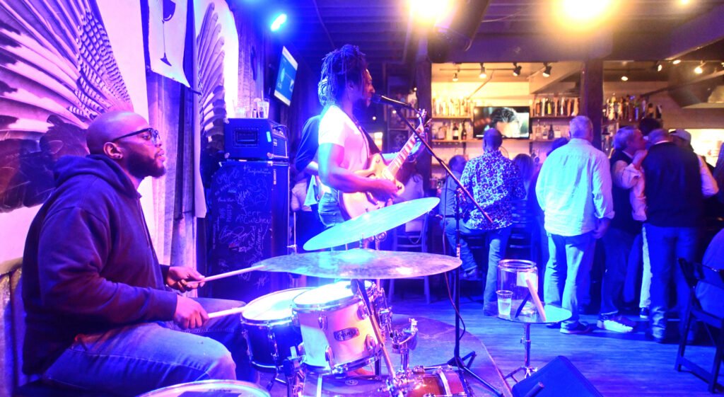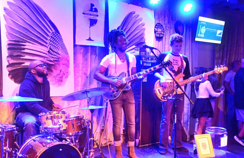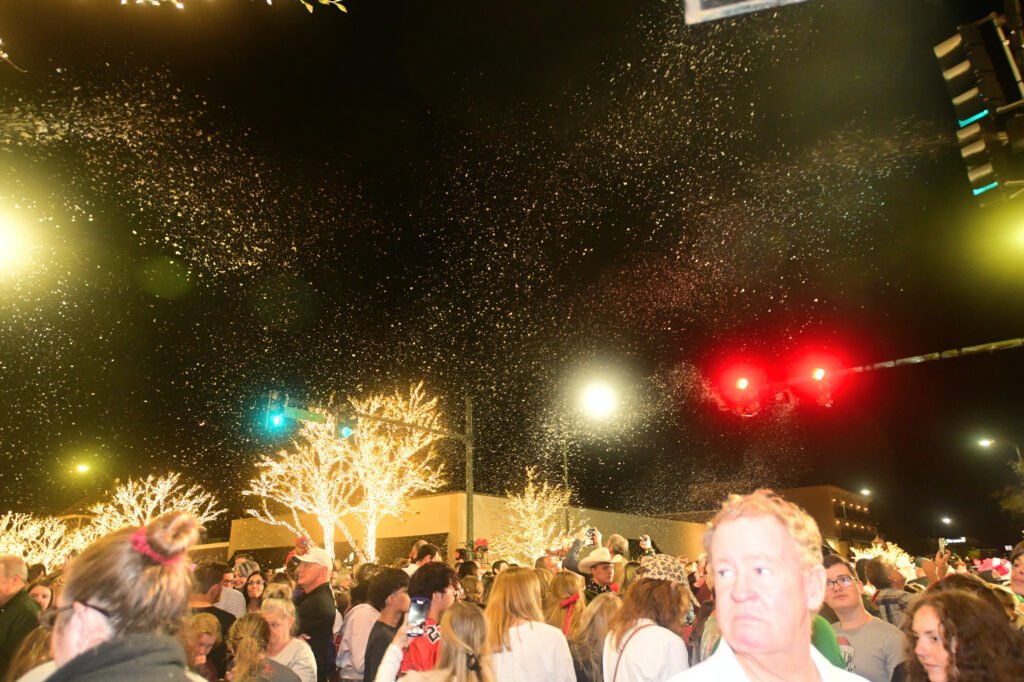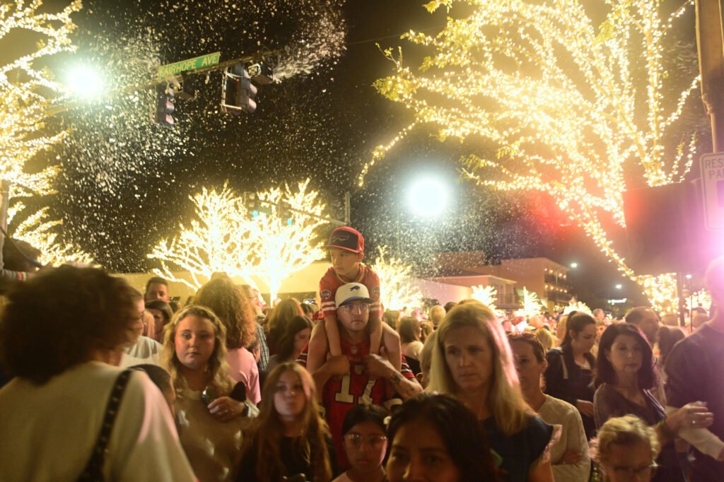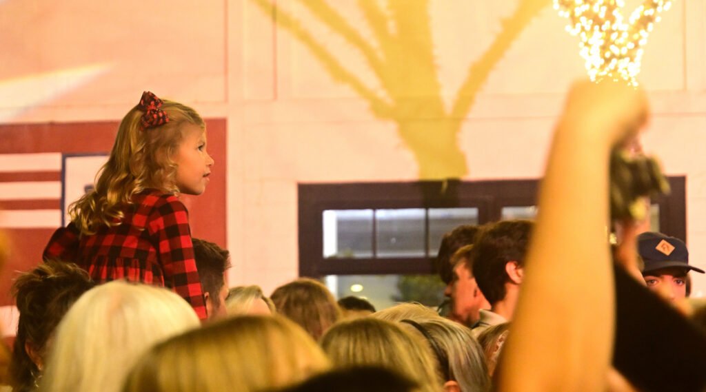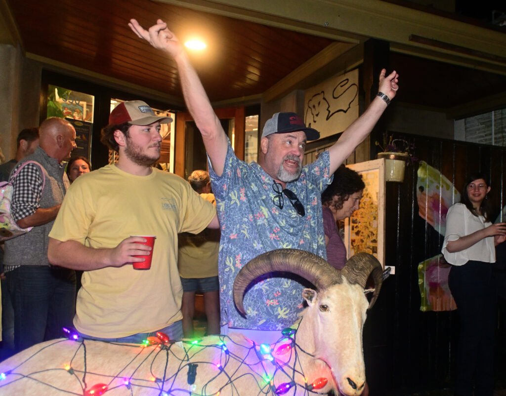 A tremendous crowd excitedly watches as the switch is thrown, lighting the trees through downtown Fairhope. Moments later, not to be outdone, members of Fairhope Sunset Rotary take part in the traditional lighting of the goat at Lyons Share framing and art gallery on De La Mare Ave. And, steps away, Matthew Jacquette entertains a crowd at The Book Cellar…